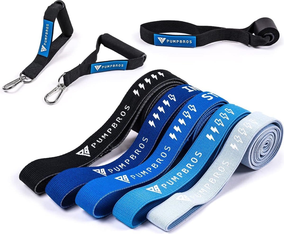 Gemakkelijk te vervoeren en altijd bij de hand – onze lange weerstandsbanden zijn gemakkelijk op te bergen en te transporteren, zodat je altijd kosteneffectief kunt trainen. De ondersteuningsbanden kunnen worden opgevouwen en in de meegeleverde tas worden bewaard. Je kunt de weerstandsbanden gebruiken om je lichaam tijdens het trainen thuis te vormen of ze mee te nemen als je op reis bent, naar het werk, naar de sportschool of naar het strand gaat Hoogwaardig, antislip materiaal, inclusief accessoires: de lange fitnessbanden bestaan uit een mix van katoen en polyester, die ervoor zorgt dat ze tijdens het trainen niet wegglijden. Het materiaal zorgt er ook voor dat je huid niet geïrriteerd wordt door wrijving en maakt hem ook hygiënisch in vergelijking met andere banden, omdat ze gemakkelijk in de was kunnen worden gewassen. De set bevat een deuranker en twee gevoerde handgrepen. Geschikt voor elk fitnessniveau: de PumpBros pull up banden zijn verkrijgbaar in 5 verschillende sterktes die gemakkelijk in elke fase van je trainingsroutine kunnen worden geïntegreerd. Ze zijn geschikt voor beginners, ervaren sporters en professionals. De verschillende intensiteitsniveaus maken ze perfect voor een gevarieerde workout en zorgen ervoor dat je het meeste uit je training kunt halen. De weerstandsniveaus hebben verschillende kleuren