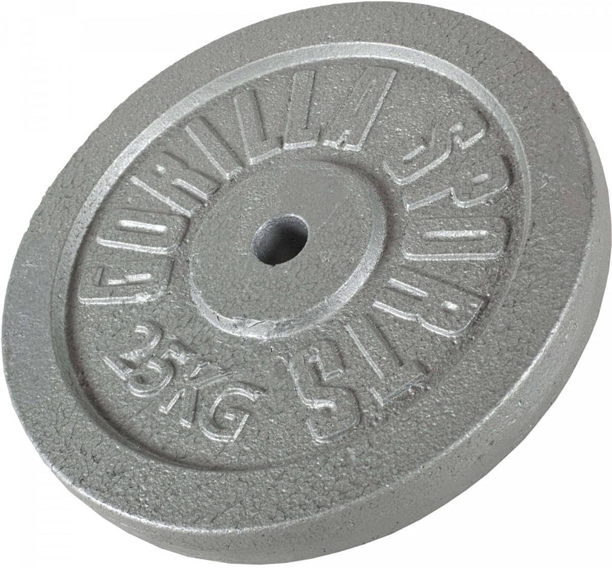Stevige gietijzeren gewichtsschijven ideaal voor elke krachttraining. Verkrijgbaar van 0,5 kg tot 30 kg. De schijven hebben een verhoogde rand voor een uitstekende grip bij het hanteren. Geschikt voor halterstangen met een gatdiameter van 30 mm. Gebruik ze om uw biceps, nek, armen en romp effectief te trainen. De gewichten hebben een duurzame zilvergrijze/zwarte hamerslag afwerking. Bekijk de gedetailleerde afmetingen per gewichtsklasse.