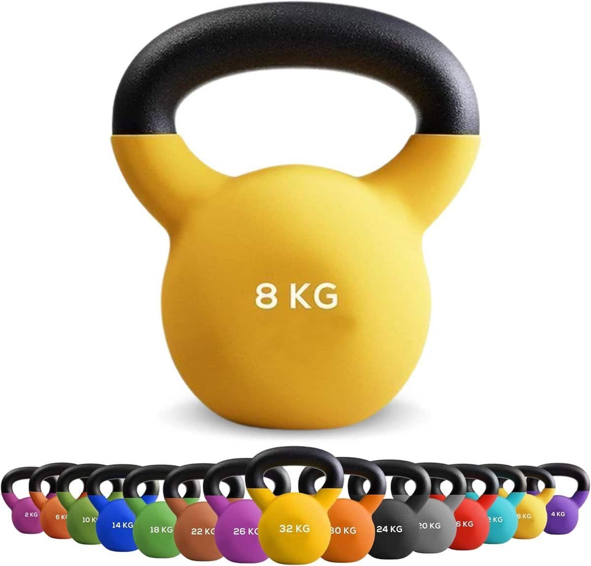 Deze gietijzeren halters zijn ideaal voor een complete full-body training thuis of in de sportschool. De halters zijn voorzien van een duurzame, antislip neopreen coating voor een veilige en comfortabele grip, zelfs tijdens intensieve sessies. Ze zijn schokbestendig en ideaal voor oefeningen zoals swings, snatches, deadlifts, squats en get-ups. Verkrijgbaar in diverse gewichten om geleidelijk vooruitgang te boeken en aan te sluiten bij elk fitnessniveau. Perfect voor het opbouwen van kracht, uithoudingsvermogen en mobiliteit. Een essentieel hulpmiddel voor elke serieuze fitnessroutine.