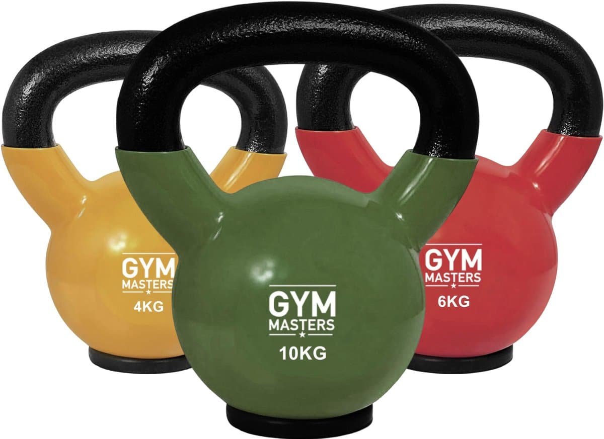 Gym Masters Kettlebell Set 4-6-10 kg – Premium Vinyl Kettlebells – Rubberen Bodem – Optimale Vloerbescherming & Veilig Trainen – Krachttraining Thuis