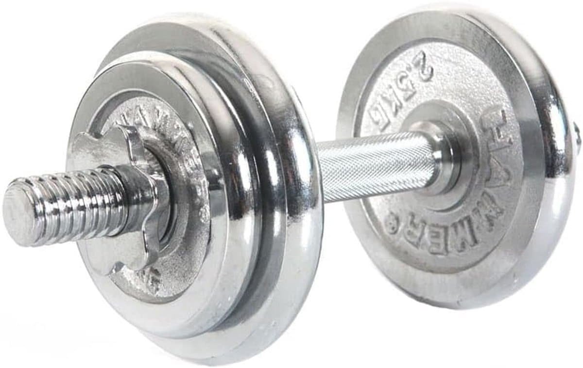 Begin uw fitnessreis met deze complete 10 kg halterset, ideaal voor kracht- en conditietraining. De set bevat een stevige korte halterstang en vier gewichtsplaten: twee van 1,25 kg en twee van 2,5 kg, wat een totaal van 10 kg oplevert. De halterschijven zijn gemaakt van massief ijzer met een duurzame chromen afwerking. Voor extra veiligheid en gebruiksgemak is de halterstang uitgerust met antislip handgrepen. De stervormige klemmen zorgen ervoor dat de gewichten stevig en veilig op de stang blijven zitten tijdens uw training. Perfect voor beginners en thuistrainers.