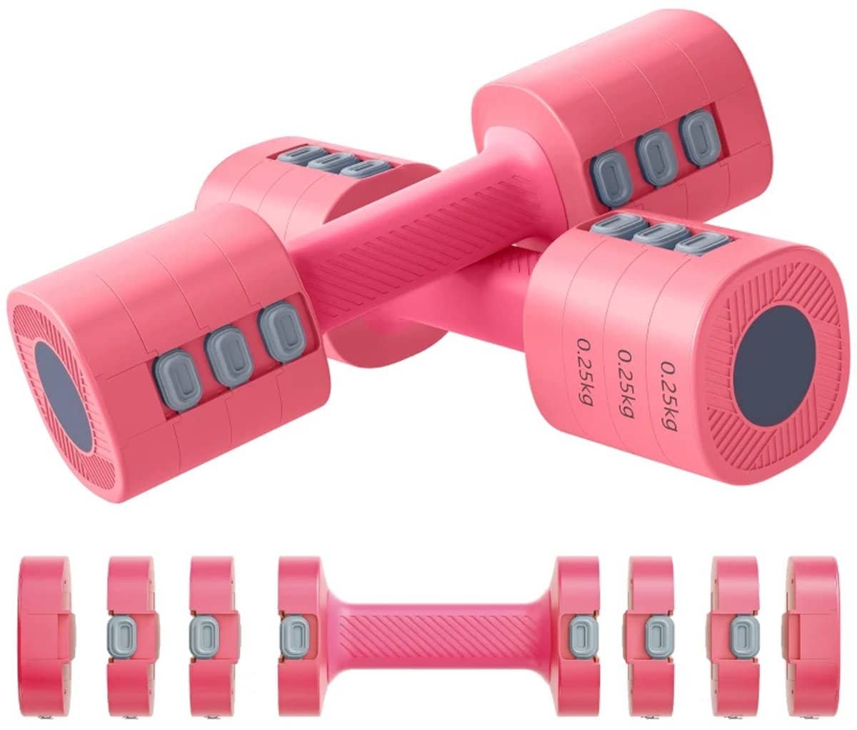 2,5 kg per halter vervangt vier halters, eenvoudig aan te passen van 1 kg tot 2,5 kg