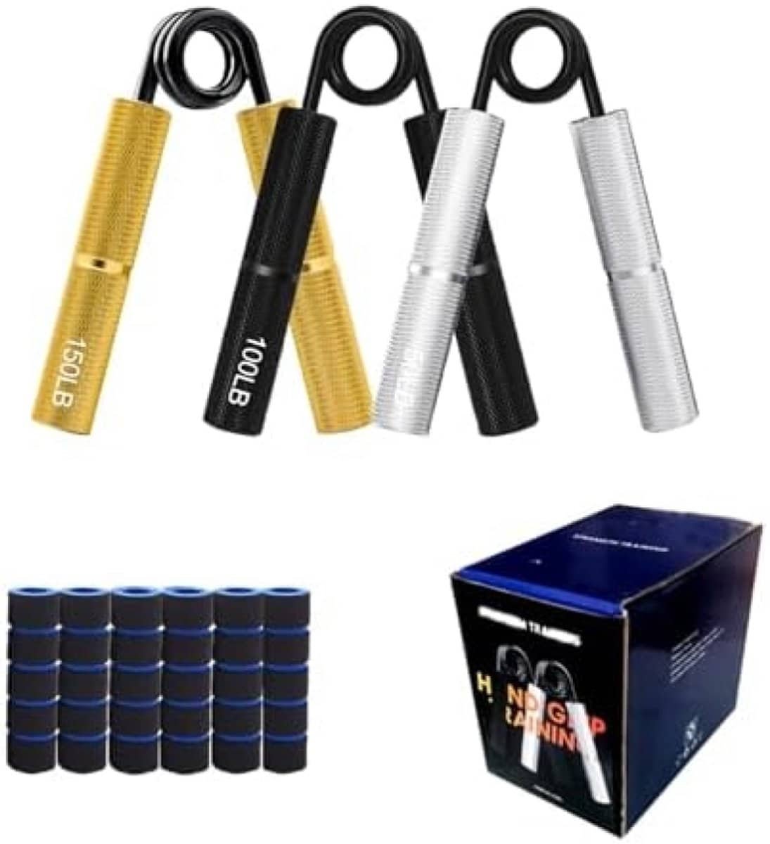Handgrijper Set voor Gripkracht Training, 50/100/150 lbs (≈23/46/68kg) met Spons Cover, Polsversterker voor Spieropbouw en Krachttraining