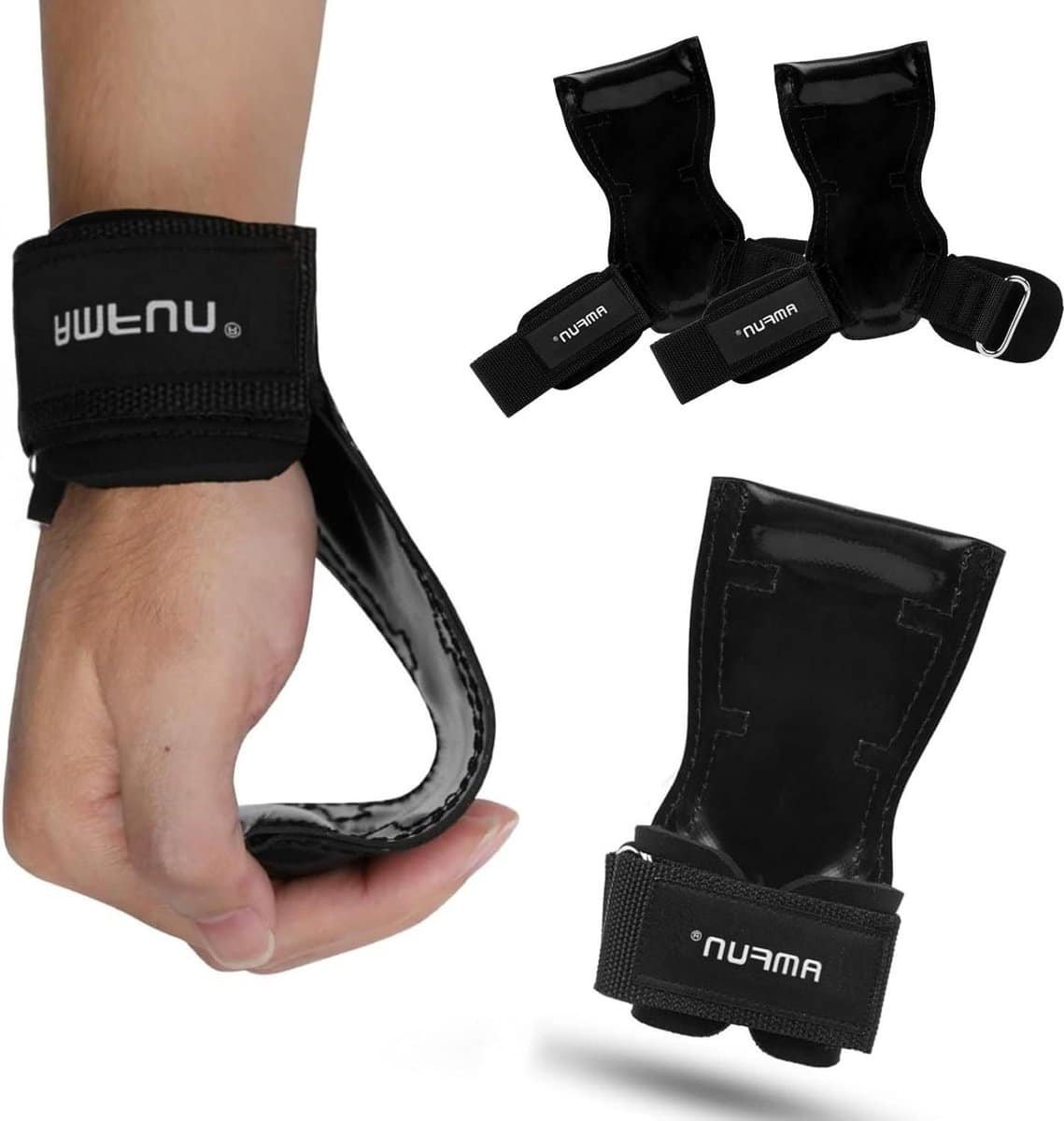 Lederen antislip grips met neopreen en klittenbandsluiting – trekhulp polsbanden met haken voor gewichtheffen – bodybuilding krachttraining