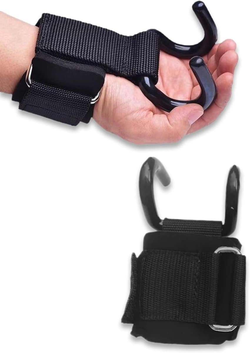 Lifting Hooks – Hijshaken voor Krachttraining – Power Hooks tot 300kg – Polssteun met Metalen Haken – Voor Deadlift, Pull Ups & Lat Pulldown – Fitness Accessoires – Zwart