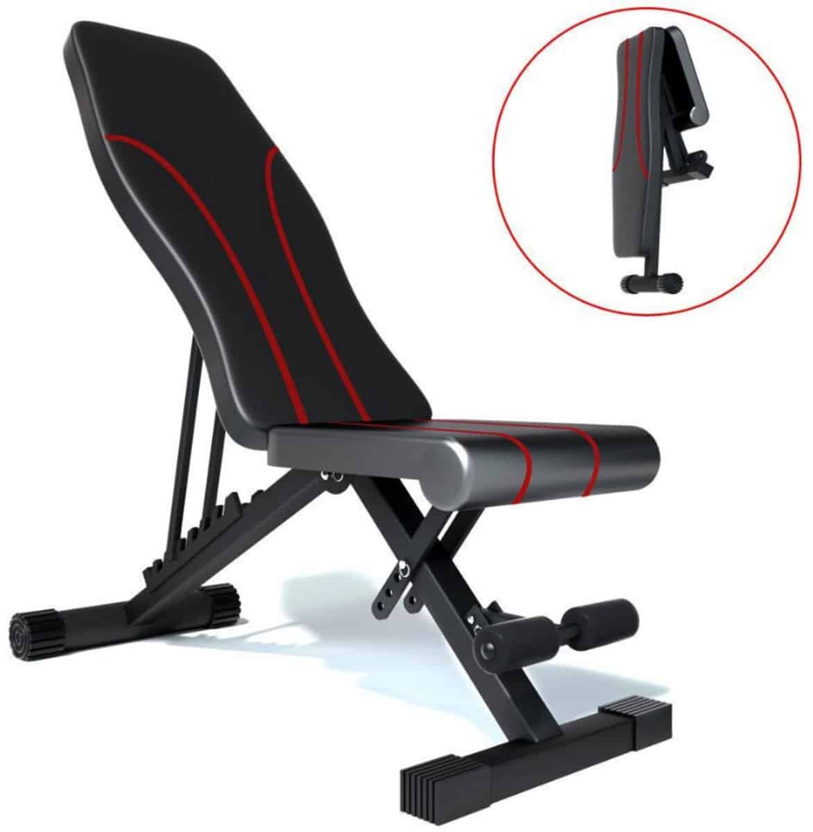 Livista Verstelbare Fitnessbank – Krachttraining – Gewichthef- en Trainingsbank – Opvouwbaar – Tot 300 kg Draagvermogen – Fitness Oefenbank – Zwart/Rood