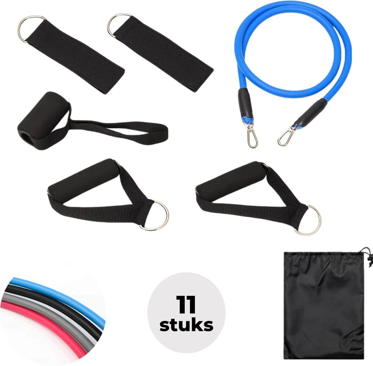 11-Delige Expander Set: Compleet pakket voor gevarieerde trainingen van boven- en onderlichaam.