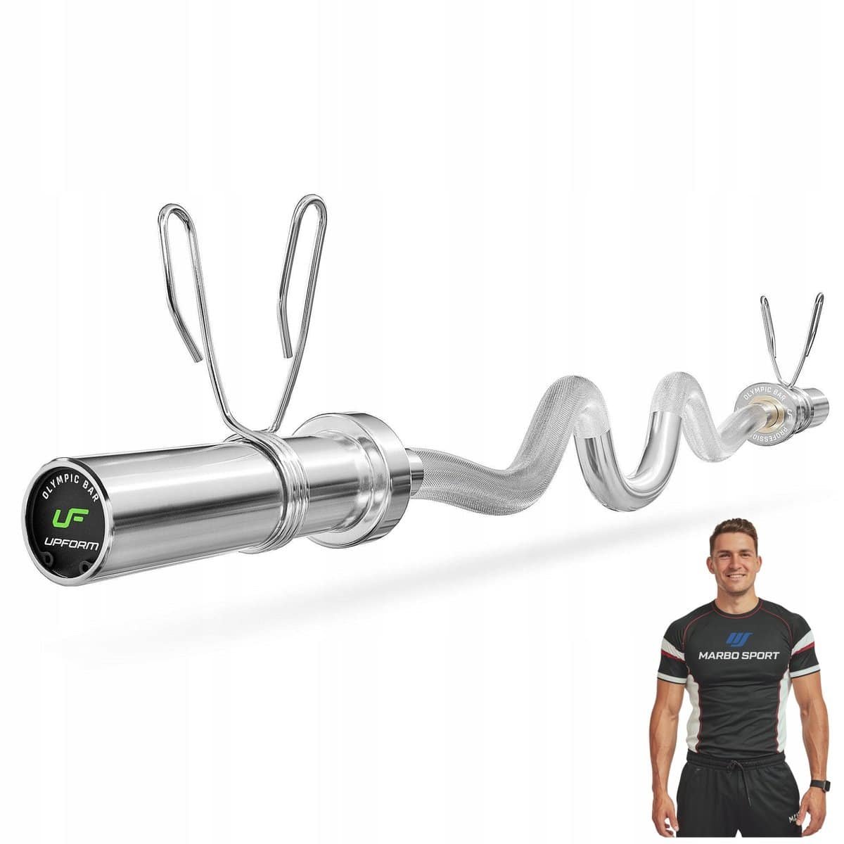 Marbo Sport – Olympische halterstang sterk gebogen 120 cm UpForm – Professionele apparatuur voor krachttraining met een maximaal gewicht van 320 kg