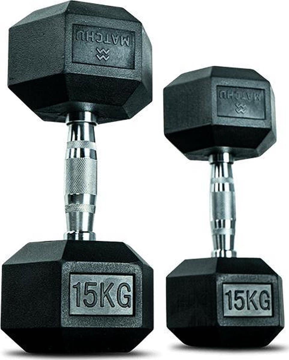 Matchu Sports – Hexa dumbbells – 15KG – Set van 2 – Krachttraining – Zwart