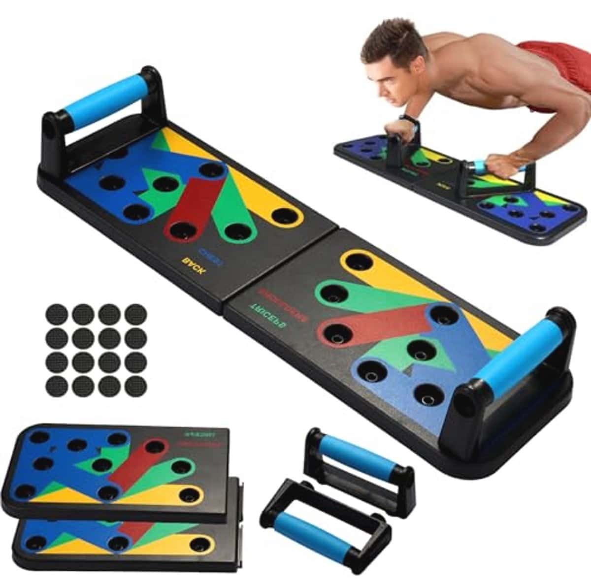 Ontdek het multifunctionele Push Up Board 9-in-1, speciaal ontworpen voor een effectieve thuisworkout. Dit trainingsapparaat beschikt over 9 hoeksleuven voor de perfecte push-up vorm, gericht op borst, armen, schouders, kern en rug. Het heavy-duty fitnessboard is gemaakt van industriële ABS-structuur en ondersteunt tot 600 pond, met bredere handgrepen om gewrichtsbelasting te verminderen tijdens intensieve trainingen. Het lichtgewicht en opvouwbare ontwerp maakt het gemakkelijk om dit apparaat mee te nemen en op te bergen, perfect voor gebruik thuis, buiten of onderweg. De ergonomische handgrepen verminderen de druk op de polsen en schouders, ideaal voor revalidatie en comfortabel gebruik op harde vloeren. Inclusief een antislipmat en een afdrukbare voortgangsgids, is dit de complete trainingsset voor jou en je vrienden of familie. Perfect als cadeau voor fitnessliefhebbers!