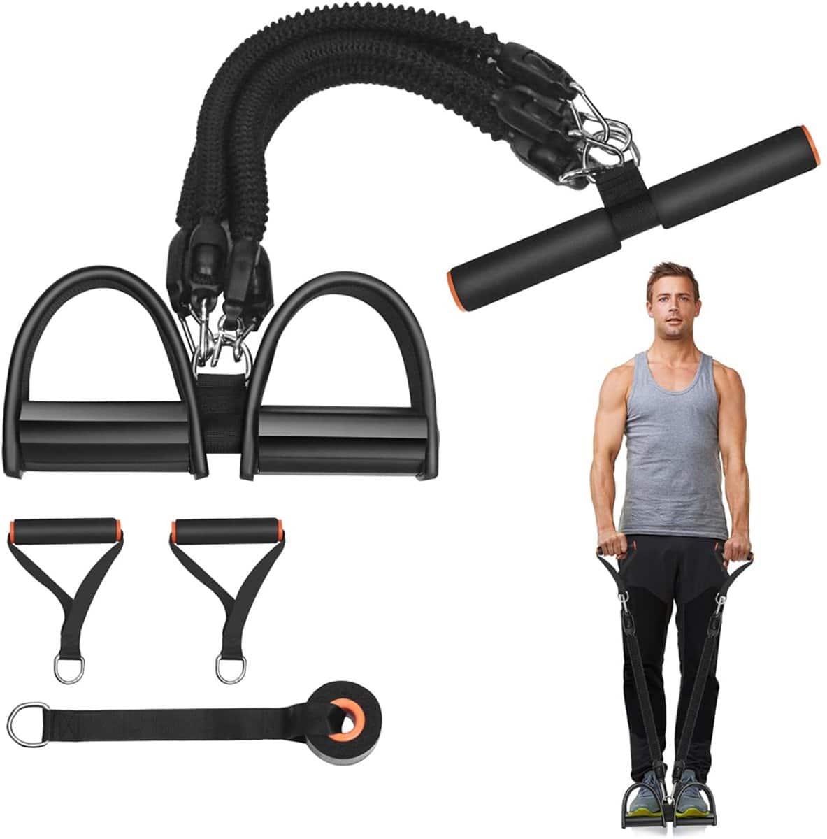 Bespaar op sportschoolkosten – Je kunt onze multifunctionele set met pedaalweerstandsbanden gebruiken om je hele lichaam te trainen.
