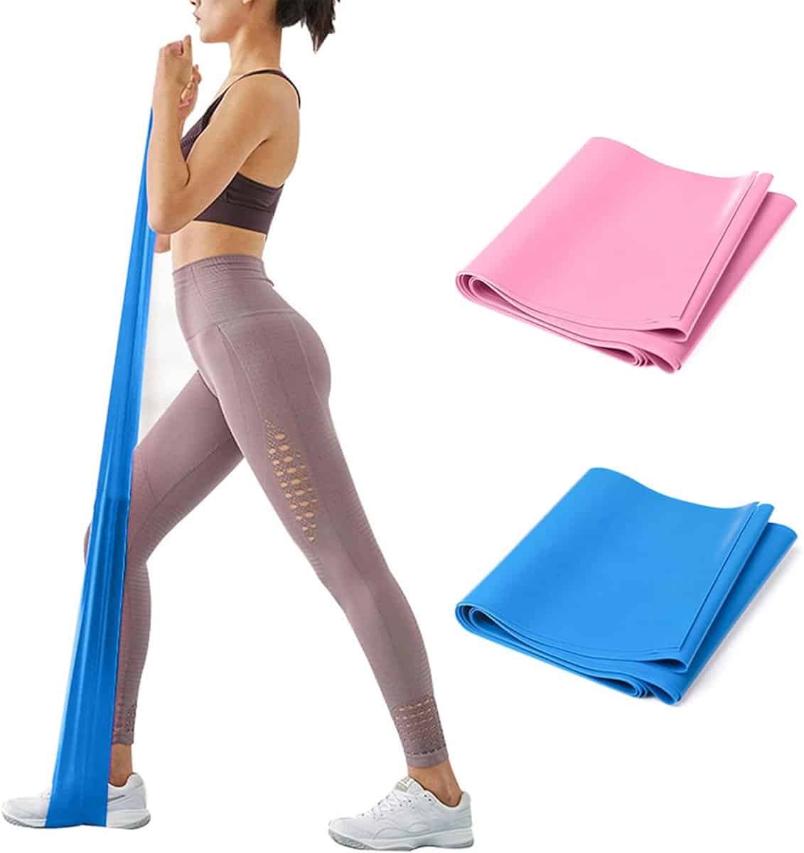 Oefenbanden – 2 stuks – 1,8 m/2 m – Weerstandsbanden – Siliconen oefenbanden – Krachttraining – Weerstand met verschillende sterktes – Geschikt voor training, fysiotherapie, stretchen, herstel, pilates, revalidatie en yoga – Roze en blauw