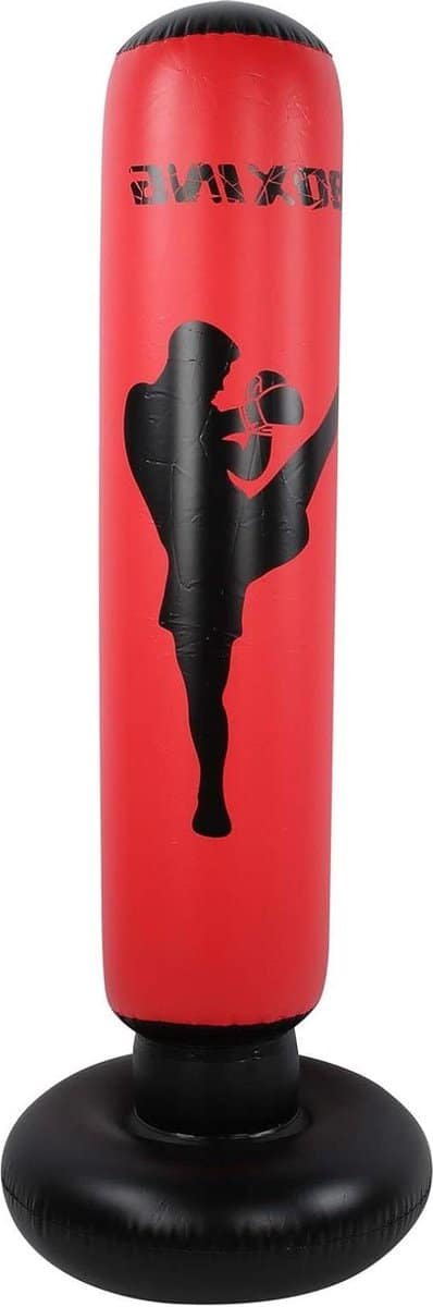 Opblaasbare staande bokszak 170cm voor krachttraining – zwart en rood – PVC bokskolom voor fitness en stressverlichting – mannen en vrouwen – jongens en meisjes