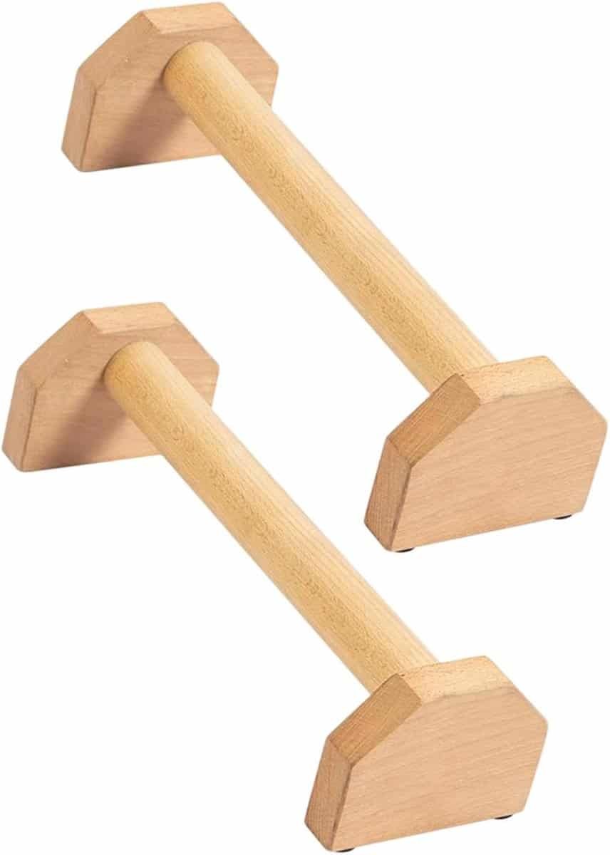 Opdrukstandaard – Gemaakt van eikenhout – Antislip ontwerp – Draagbare parallelle stang – Geschikt voor krachttraining en opdrukoefeningen thuis – Biedt stabiele ondersteuning tijdens trainingen.