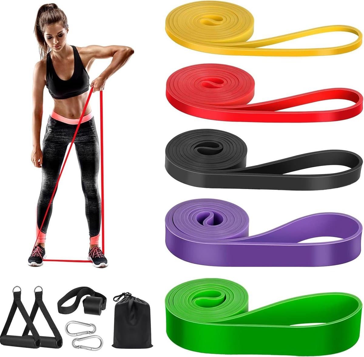 Weerstandsbanden Set voor Krachttraining - 5 stuks met Meerdere Weerstandsniveaus en Draagtas