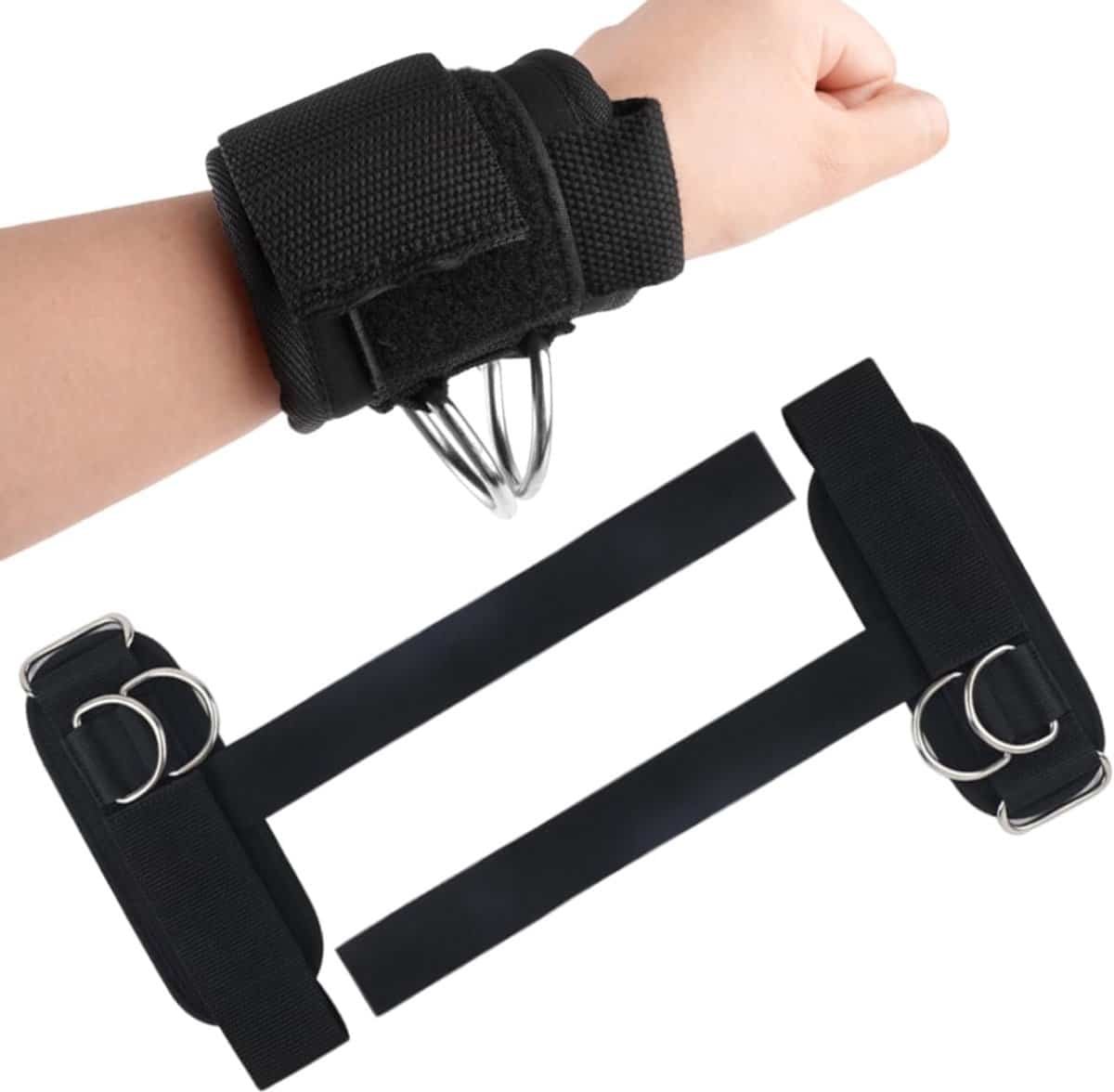 Pack of 2 Gewichtheffen Polsbanden – Grip Hulp – Kracht Sport met D-Ringen voor Kabelmachine Training – Trekhulpmiddelen – Krachttraining voor Barbells, Dumbbells, Deadlifts