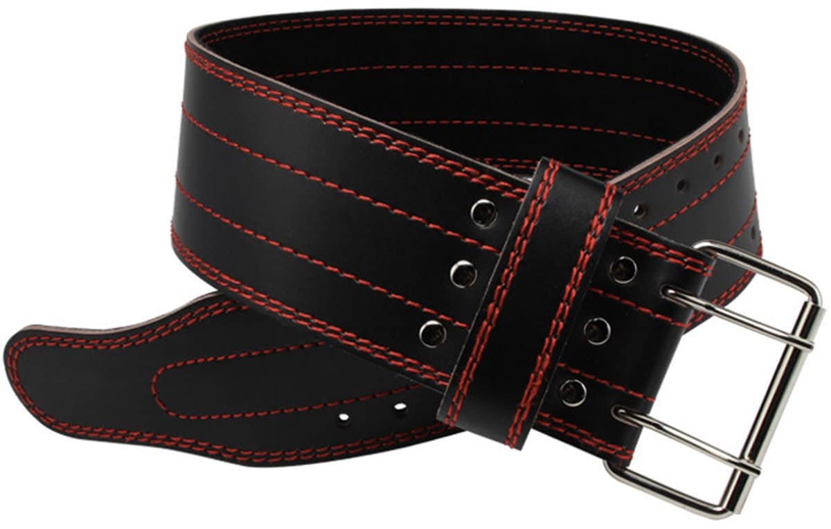 Prival Powerlift Riemband – Leren Gewichthefriem met Dubbele Gesp – Verstelbaar – Voor Krachttraining, Fitness & Powerlifting – Zwart met Rood Stiksel