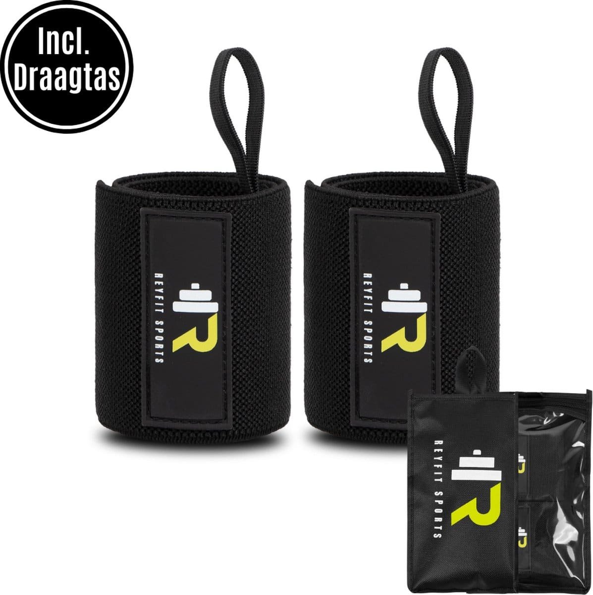 ReyFit Sports 2x Fitness & CrossFit Polsband – Wrist wraps – Polsbanden voor Krachttraining – Polsbrace – Fitness Accessoires – Inclusief Draagtas – Zwart