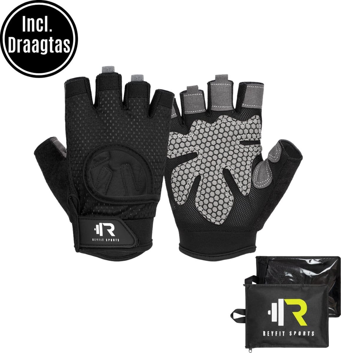 ReyFit Sports Fitness Handschoenen – Fitness Gloves – CrossFit & Powerlifting – Fitness Accessoires – Krachttraining Artikelen – Inclusief Draagtas – Grijs – S