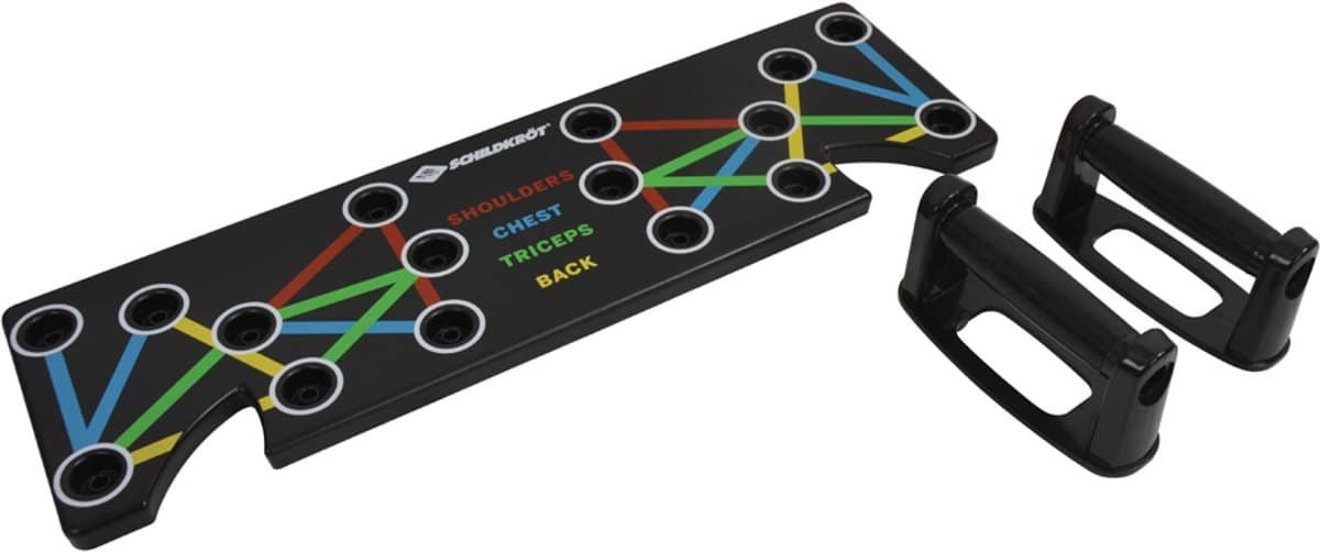 Schildkröt push-up multitrainer fitnessbord voor krachttraining thuisMet de push-up multitrainer van Schildkröt wordt krachttraining in de push-up positie een feestje! Dit innovatieve fitnessbord helpt je om je borst, schouders, rug en armen doelgericht te trainen dankzij de 10 verschillende gripposities. Het slimme plug-in systeem met kleurcodes zorgt ervoor dat je direct aan de slag kunt, zonder gedoe.De antislip handgrepen en pads aan de onderkant geven je niet alleen een stevige grip, maar beschermen ook je vloer. Door het lichte en compacte ontwerp neem je het bord eenvoudig overal mee naartoe of berg je het snel op na je workout. Of je nu een beginner bent of een doorgewinterde sporter, deze multitrainer is perfect voor thuisgebruik!Extra informatie10 verschillende gripposities voor gevarieerde trainingInnovatief plug-in systeem met kleurcodesAntislip handgrepen en vloerbeschermingLichtgewicht en compact, ideaal voor thuis.