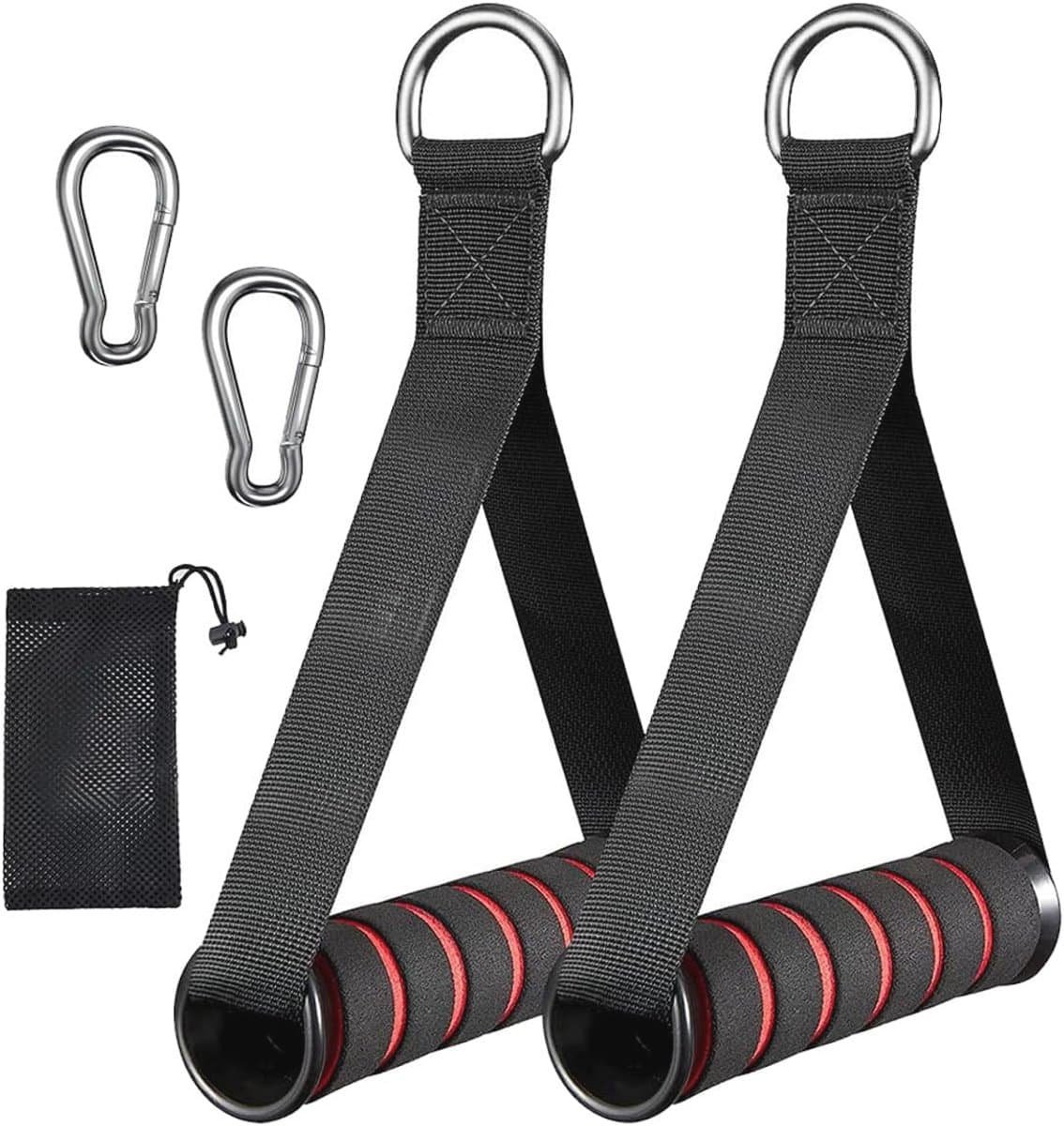 Specificaties: Productnaam: trainingsgrepen met één hand. Materiaal: PVC, nylon. Kleur: zwart, rood. Afmetingen van het handvat: 12 cm. Inhoud van de levering: Een paar sporthandgrepen, een paar wandelgespen, en 1 x opbergtas. Functies: 1. Onze handgreep met één hand voor weerstandsbanden biedt de mogelijkheid om krachttraining naar een nieuw niveau te tillen. 2. Met hoogwaardige materialen en ergonomisch design voor een comfortabele en effectieve training. 3. Geschikt voor gebruik op kabeltrekken, kabels en weerstandsbanden. 4. Maakt een groot aantal bovenlichaamsoefeningen mogelijk, zoals lattrektochten, tricepstraining en bicepscurls. 5. De antislip fitness-kabelgreep zorgt voor een veilige grip en minimaliseert het risico op letsel. Investeer in je fitness en bestel vandaag nog onze handgrepen!
