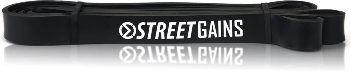 StreetGains® Weerstandsband Medium – Resistance Band 15 tot 30 kg – Zwart – Fitness Elastiek voor Calisthenics, CrossFit, Krachttraining & Pull-Ups