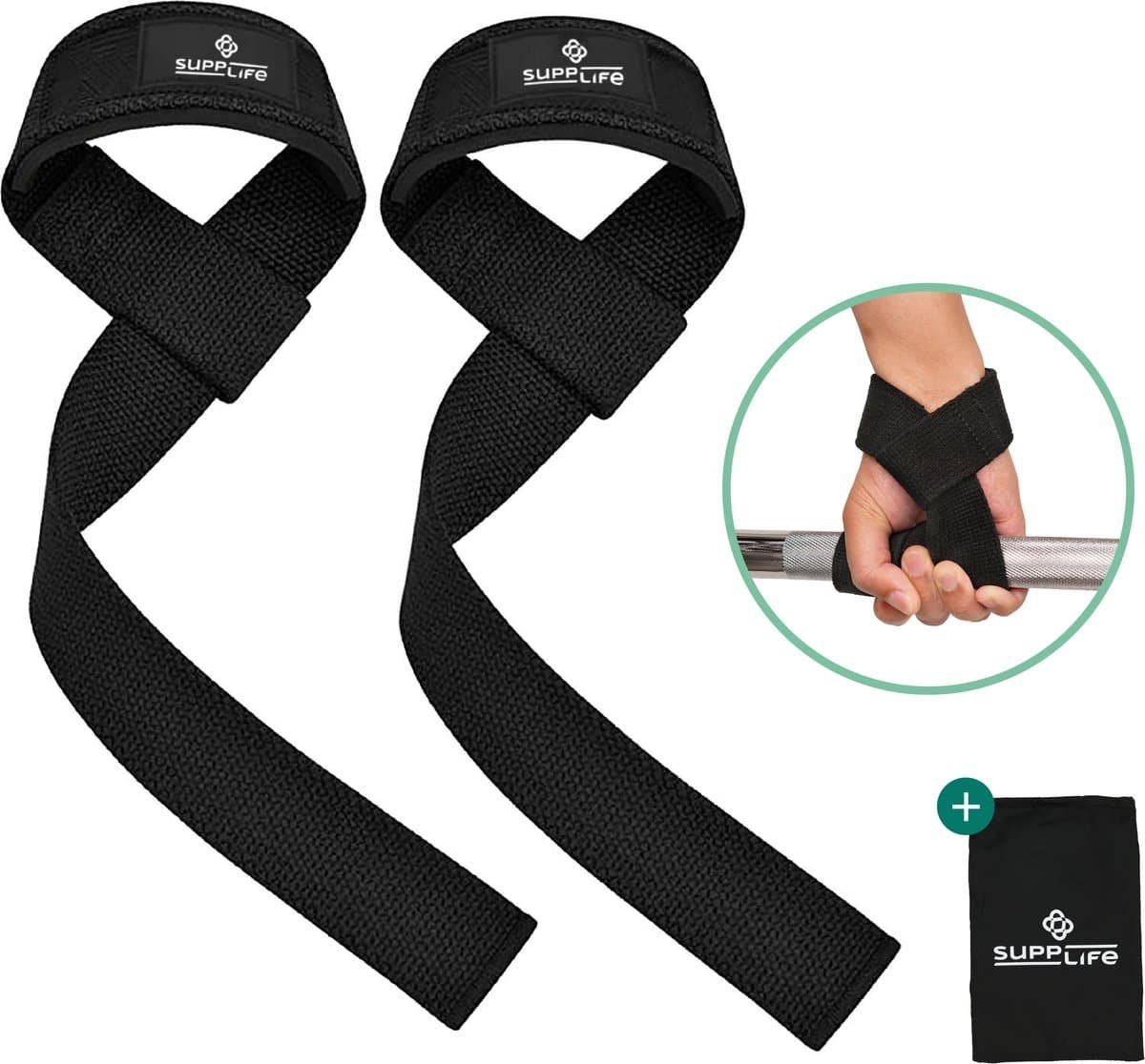 Supplife Lifting Straps – Weightlifting Straps – Gym – Lifting Grips / Hooks – Fitness, Powerlifting, Crossfit & Krachttraining – Workout – Deadlift Straps – Zwart