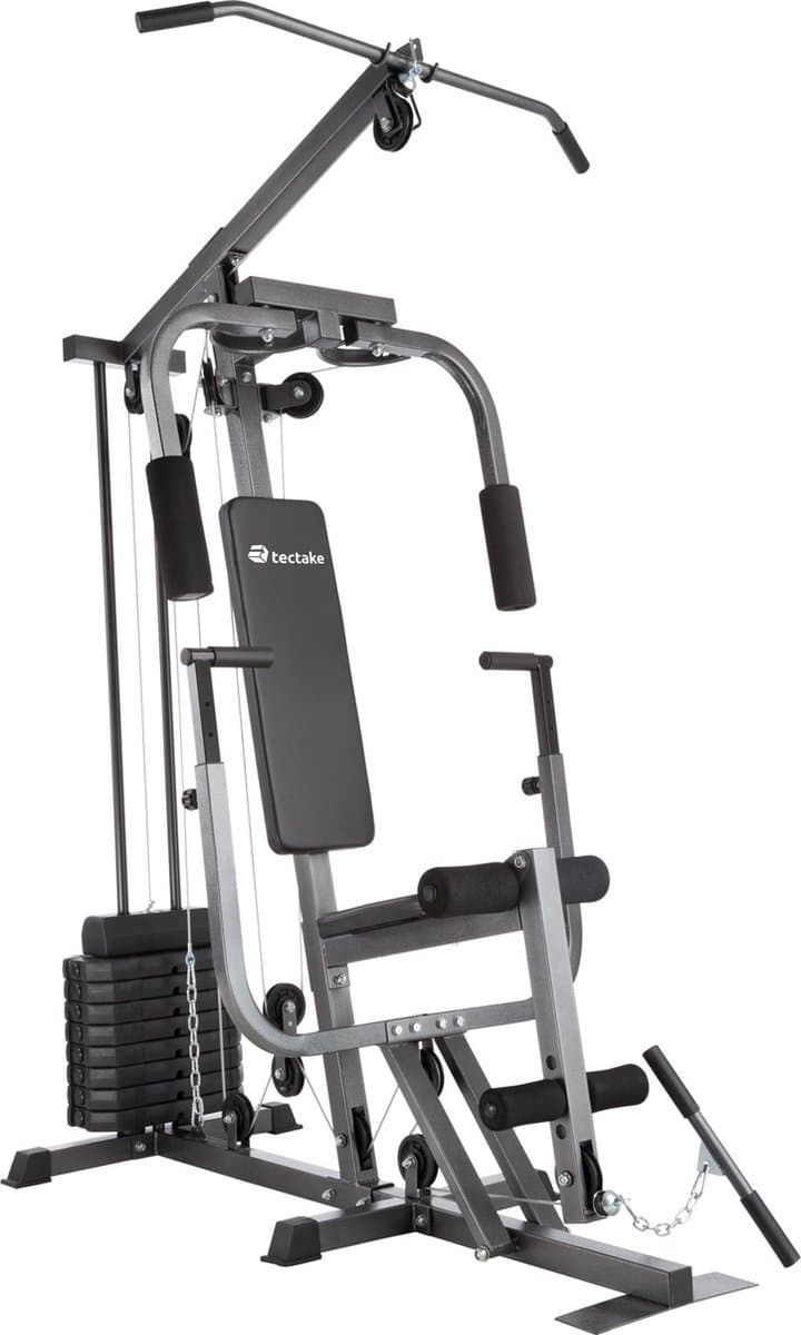 Fit worden is hard werken. Het krachtstation van tectake zorg ervoor dat u er plezier aan beleeft. De talrijke druk- en trekoefeningen en de verstelbare gewichten zijn optimaal geschikt om doelgericht de romp, de armen en de benen te trainen. De massieve constructie van robuust buisframe met kunststof ommantelde staalkoorden garandeert optimale veiligheid en stabiliteit bij elke oefening – en spaart de gewrichten als staand en al zittend. Met zijn veelzijdige trainingsmogelijkheden en geringe afmetingen is dit multistation voor full body-workout ook geschikt voor kleinere woningen of kelderruimtes. Word en blijf fit met het krachtstation van tectake. Krachtstation voor thuis met veelzijdige oefeningsmogelijkheden