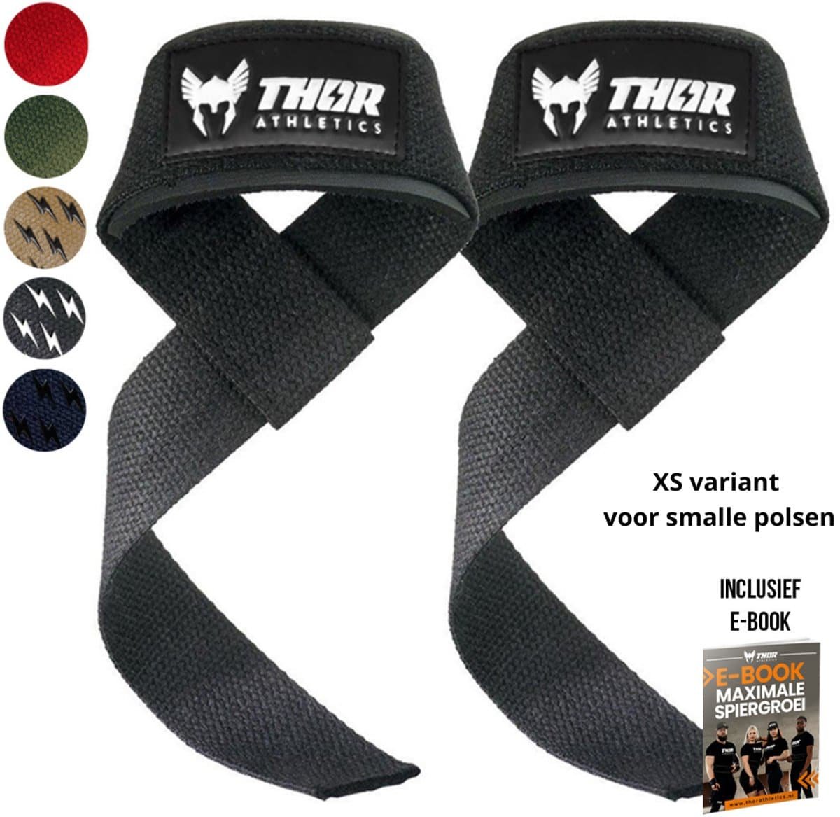 Thor Athletics Lifting Straps – Krachttraining Accessoires – Powerlifting Straps – Deadlift Straps – Zwart – Inclusief E-Book – (XS)
