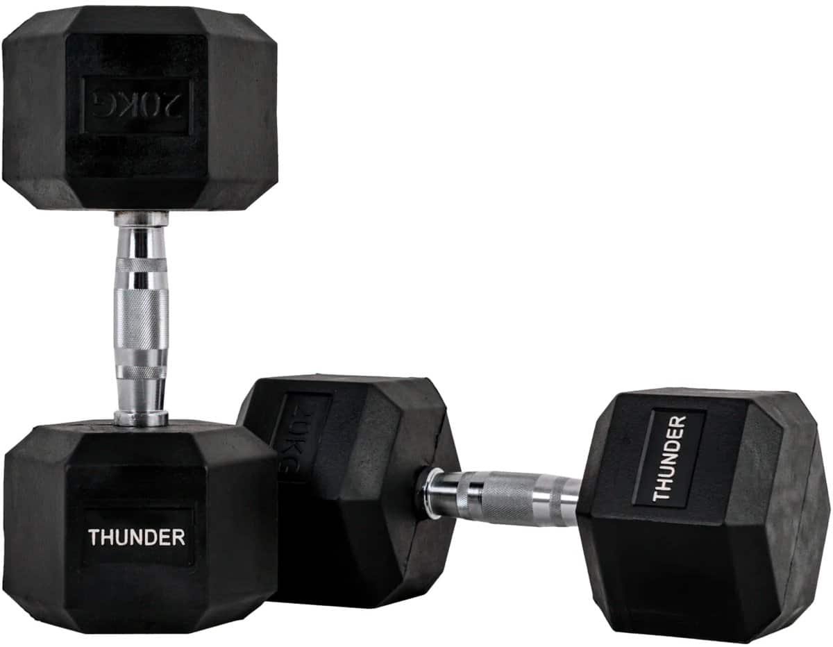 THUNDER® | HEXAGONAL-DUMBBELLS-20KG | Zwarte Rubberen Halter | Stalen Kern | Voor Krachttraining & Fitness | Antislip | Duurzaam & Professioneel | Per Stuk – Stevige Grip