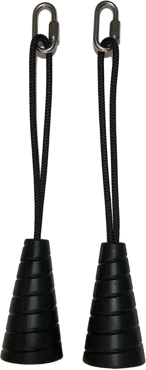 Deze set bevat twee handgrepen met roestvrijstalen karabijnhaken, ideaal voor neutrale gripoefeningen. De handgrepen zijn eenvoudig te bevestigen aan elk trainingsapparaat met de karabijnhaken. Wikkel de touwlus om het handvat of de stang en trek deze stevig aan voor een optimale grip. Geniet van comfortabele en effectieve trainingen met deze triceps touw.