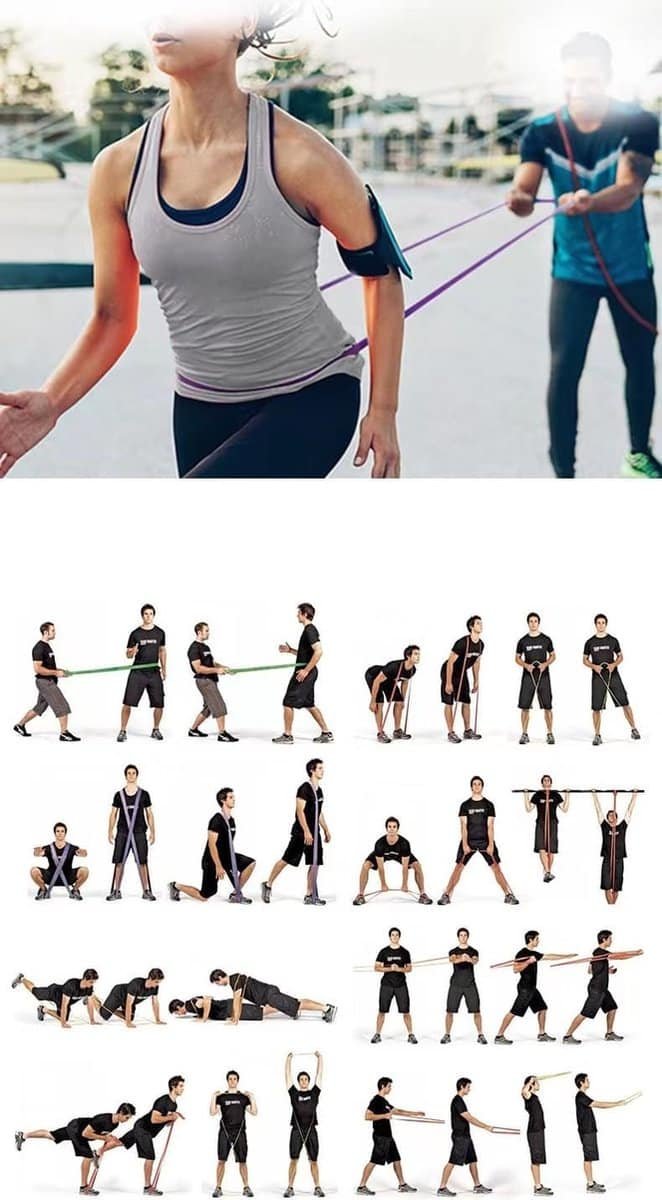 Weerstandsbanden Fitness Set + Trainings eBook - Tubes - Elastische Work-Out Power Weerstand Banden: Handvaten Deuranker Enkelbanden | Krachttraining Gym