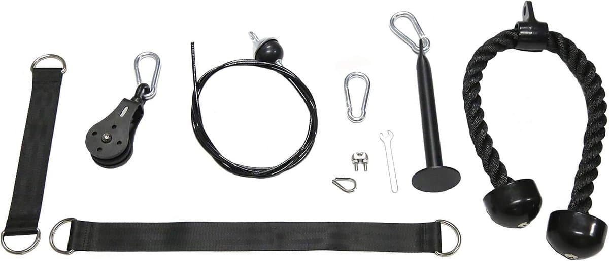 Multifunctioneel verstelbaar power rack voor een complete krachttraining thuis. Dit squat stand is uitgerust met J-haken en wordt geleverd met diverse accessoires, waaronder een laadpin, 3 karabijnhaken, 1 tricepstaalkabel, 2 ophangbanden, 1 kabel en 1 katrol. Ideaal voor veilige en gevarieerde oefeningen zoals squats, bankdrukken en meer.