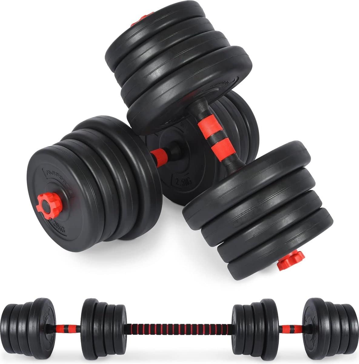 Verstelbare 2-in-1 Halterset – Korte en Lange Halters voor Krachttraining – 20, 30 of 40 kg