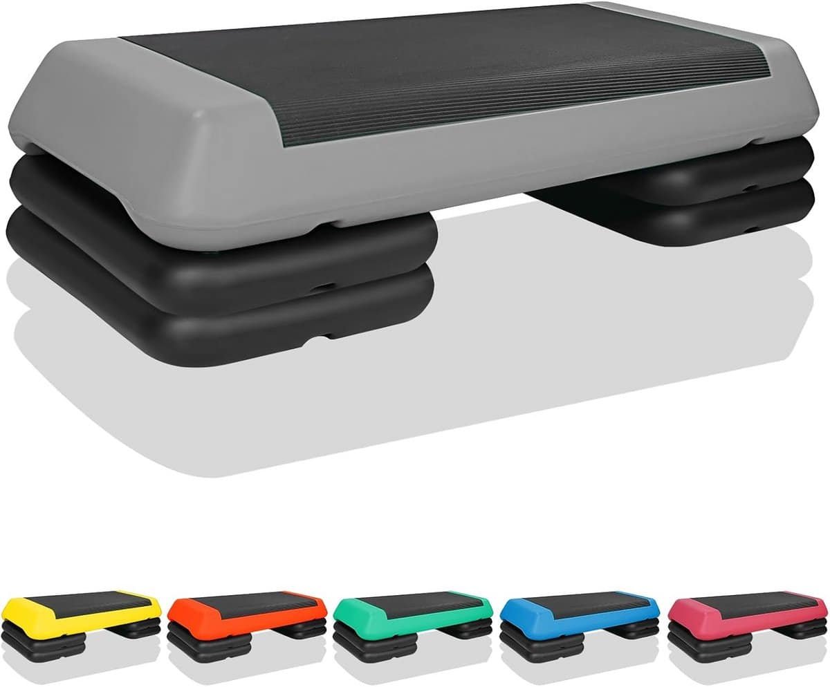 Lichte en compacte oefenstepper, ideaal voor fitnessoefeningen thuis, in de sportschool of buiten. Het antislipoppervlak met strepen zorgt voor maximale grip en veiligheid tijdens de training. De hoogte is eenvoudig verstelbaar (4, 6 of 8 inch) om de intensiteit aan te passen aan uw niveau. Versterk borst-, rug- en beenspieren met aerobe oefeningen, push-ups en sit-ups. Perfect om de conditie te verbeteren, gewicht te verliezen en de cardiovasculaire gezondheid te ondersteunen. Stevig constructie met een draagvermogen tot 550 lbs. Afmetingen platform: 29″ x 14,5″. Inclusief 4 risers.