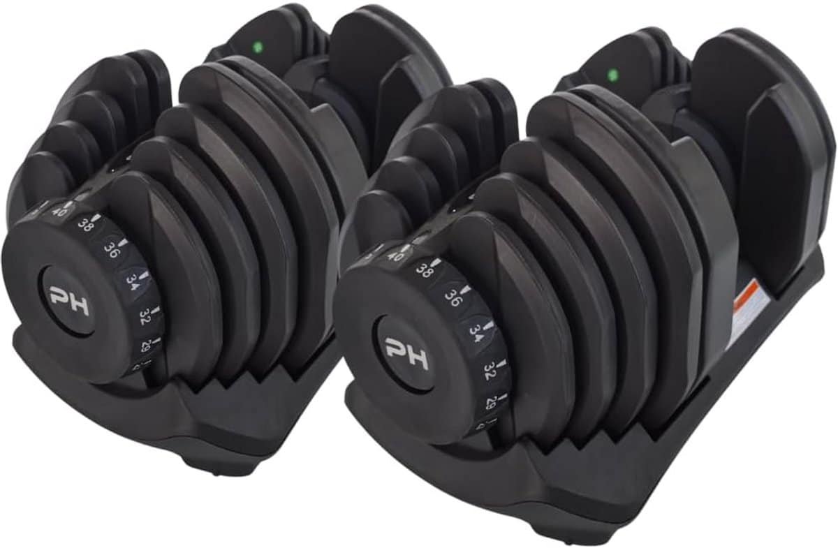 Vervang een hele reeks losse gewichten door deze veelzijdige en ruimtebesparende verstelbare dumbbell set. Met 17 instelbare gewichtsopties (5 tot 40 kg) in slechts twee halters, is deze set ideaal voor elke vorm van krachttraining en fitness thuis. Het slimme draaisysteem maakt het wisselen van gewicht snel en intuïtief, zodat je ononderbroken kunt trainen. De ergonomische handgrepen zorgen voor een veilige en comfortabele grip tijdens intensieve sessies. Perfect voor oefeningen zoals curls, persen, squats en lunges. Maximale veelzijdigheid en duurzaamheid verpakt in een compact ontwerp dat elke thuisgym optimaliseert.