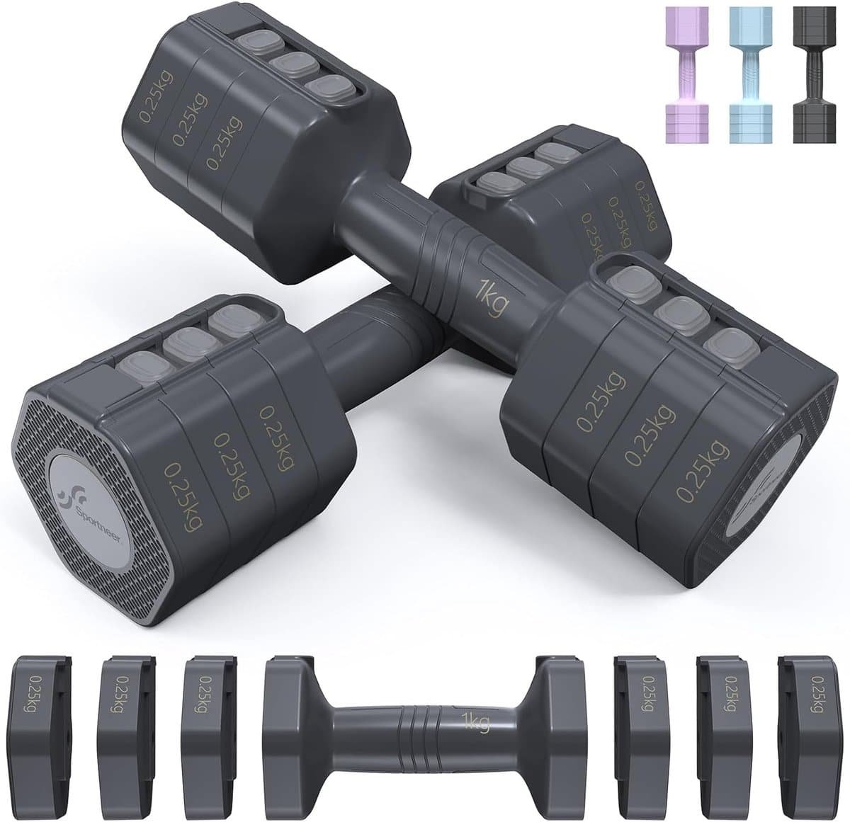 Deze verstelbare dumbbellset voor dames biedt een unieke 4-in-1 gewichtsverstelling. Elk paar halters is instelbaar van 1 kg tot 2,5 kg, waardoor je de optimale belasting kunt kiezen voor je training. Ideaal voor gebruik thuis, in de sportschool of op kantoor. Dankzij het innovatieve knoopklemontwerp kun je snel schakelen tussen gewichten, waardoor je tijd bespaart tijdens je workout. Het compacte en stabiele ontwerp voorkomt dat de halters wegrollen en maakt ze eenvoudig op te bergen. Gemaakt van hoogwaardig en duurzaam materiaal met antislip handgrepen voor extra comfort en veiligheid. Deze halterset is perfect voor het trainen van je hele lichaam, van armen en schouders tot benen en billen. Een uitstekende keuze voor fitnessliefhebbers!