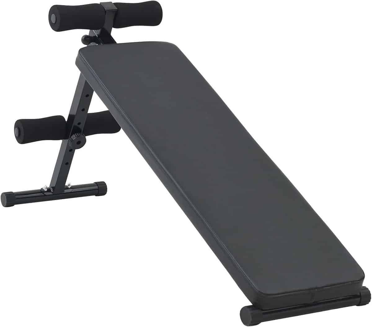 Deze stevige sit-up bank is ideaal voor jouw thuis fitnessroutine. De constructie is vervaardigd uit duurzaam, met poedercoat afgewerkt staal, wat zorgt voor een lange levensduur en weerstand tegen slijtage. Het ontwerp is eenvoudig in hoogte verstelbaar tussen 48 en 68 cm, geschikt voor verschillende oefeningen en gebruikerslengtes. Dankzij het opvouwbare mechanisme is de bank gemakkelijk op te bergen, perfect voor ruimtes waar elke centimeter telt. Ideaal voor indoor gebruik, dit fitnessapparaat ondersteunt diverse trainingen zoals sit-ups en beenheffingen. Maximale belasting 150kg. Afmetingen: 124 x 33,5 x 55 cm (L x B x H). Gewicht: 7,9 kg. Kleur: Zwart. Montage vereist.