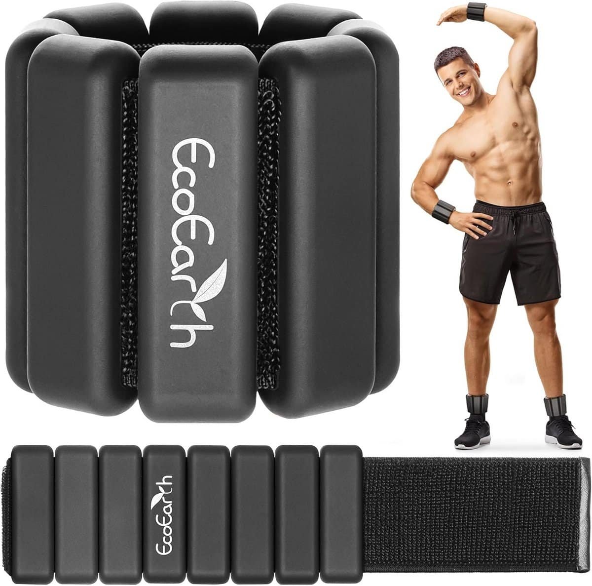 Verstelbare Enkel- en Polsgewichten – Set van 2 – 450 g – Zwart – Siliconen Gewichtsarmbanden voor Fitness, Krachttraining, Hardlopen, Yoga – EcoEarth