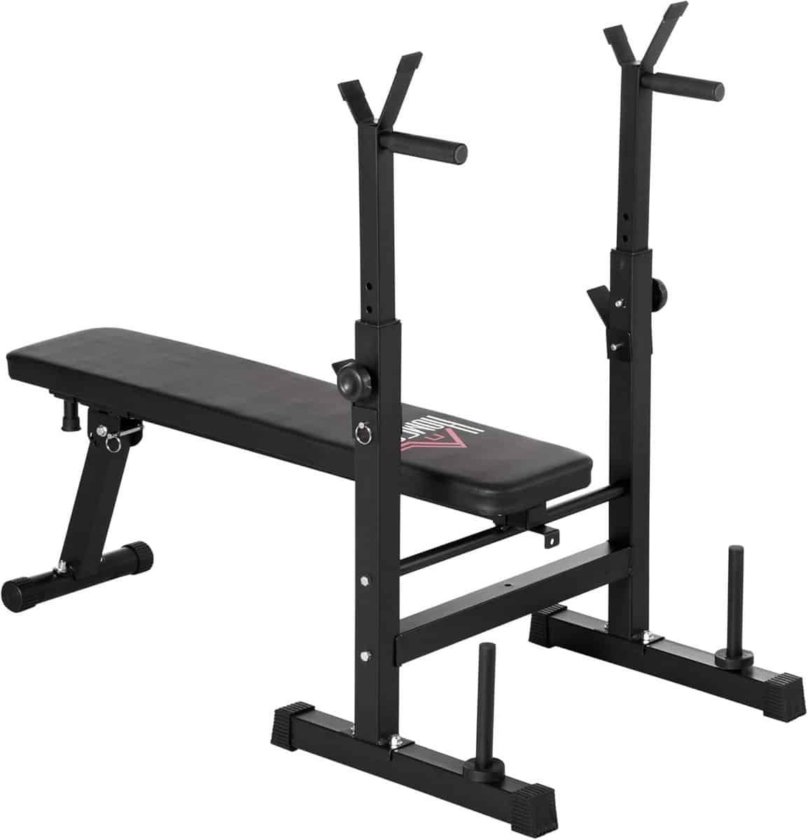 Transformeer uw woonkamer in een complete home gym met deze multifunctionele, verstelbare gewichtenbank. Ideaal voor een effectieve training van het bovenlichaam, inclusief oefeningen zoals bankdrukken, dips en roeien. Het geïntegreerde halterrek heeft acht verschillende hoogtestanden voor een gepersonaliseerde en veilige trainingservaring. Het zacht gevoerde zitvlak, bekleed met PU-leer, garandeert maximaal comfort tijdens intensieve sets. Na de training is de bank eenvoudig op te klappen en compact op te bergen, wat deze fitnessbank perfect maakt voor kleinere ruimtes. De stevige stalen constructie en antislipvoeten zorgen voor stabiliteit en beschermen uw vloer. Verhoog uw kracht en conditie zonder de deur uit te gaan. Maximale belasting: 150 kg (bank), 100 kg (halterrek).