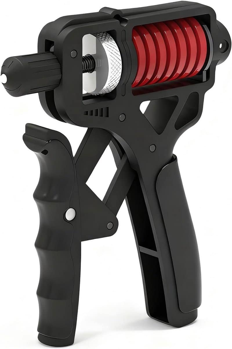 Verbeter uw hand- en onderarmkracht met deze verstelbare griptrainer. De trainer biedt een instelbare weerstand van 5 tot 165 kg, ideaal voor zowel beginners als gevorderden. Dankzij de dubbele veerstructuur zorgt deze voor een gelijkmatige krachtoverdracht en effectieve stimulatie van de spiergroepen. Het handvat is voorzien van een antislip TPE coating voor comfort en stabiliteit tijdens de training. Bovendien is de kop vervaardigd uit wolfraamstaal en titaniumlegering en kan deze in noodgevallen gebruikt worden om autoruiten te breken. Het compacte formaat (17,5 x 13,5 cm) en lichte gewicht (425 gram) maken hem makkelijk mee te nemen. Stel de weerstand nauwkeurig in door aan de knop te draaien. Let op: stel de weerstand langzaam in en gebruik de raambreker functie alleen in noodsituaties.