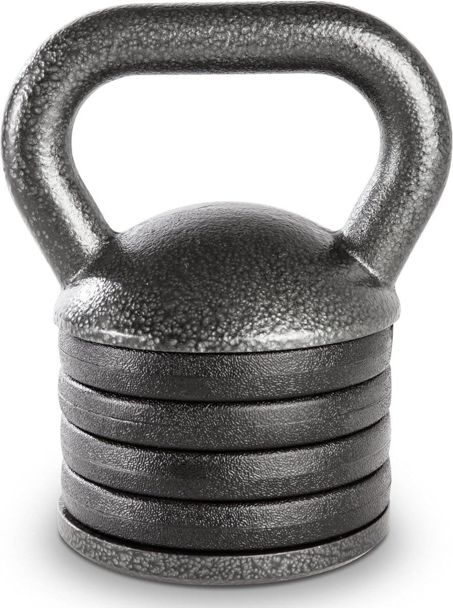 Voordelen van de Adjustable Kettlebell: Alles-in-één kettlebell-set met verzwaarde handgreep, verwijderbare gewichtsschijven en bodemplaat.