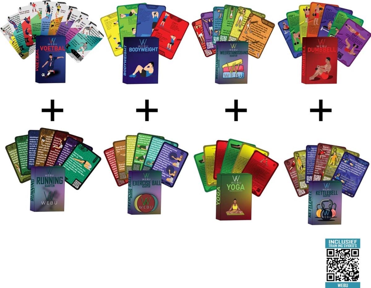 WEBU [ALL IN ONE PACK] Bodyweight + Dumbbell + Exercise Ball + Kettlebell + Weerstandsband + Yoga + Voetbal + Running Kaarten | Incl. Trainingsvideo’s – Fitness – Crossfit – Krachttraining – Kettlebell – Yoga – Thuis Sporten