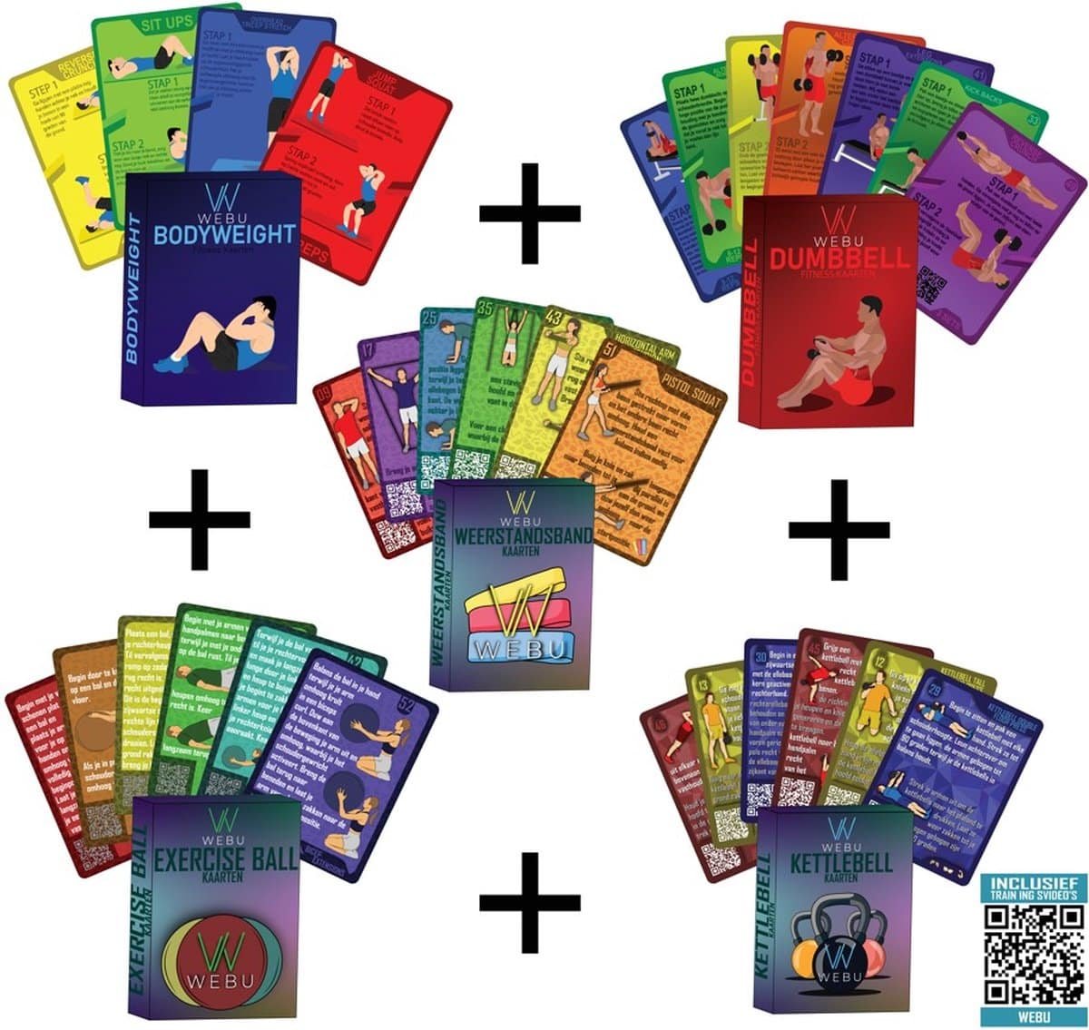 WEBU Bodyweight + Dumbbell + Exercise Ball + Kettlebell + Weerstandsband Kaarten | Incl. Trainingsvideo’s – Fitness – Crossfit – Krachttraining – Kettlebell – Yoga – Thuis Sporten