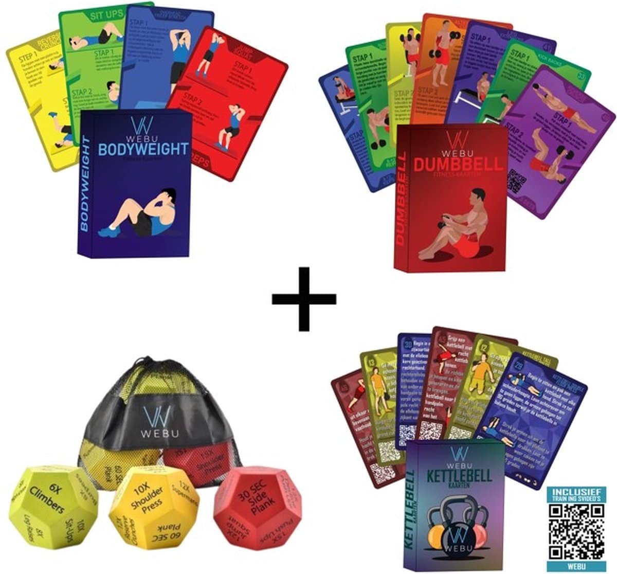 Op zoek naar extra variatie tijdens het sporten? Of ben je simpel weg inspiratieloos als het aankomt op sporten? WEBU heeft hiervoor de oplossing, Met de workout dobbelstenen en trainingskaarten zijn saaie workouts verleden tijd. Nu verkrijgbaar in een extra voordelige combipack!