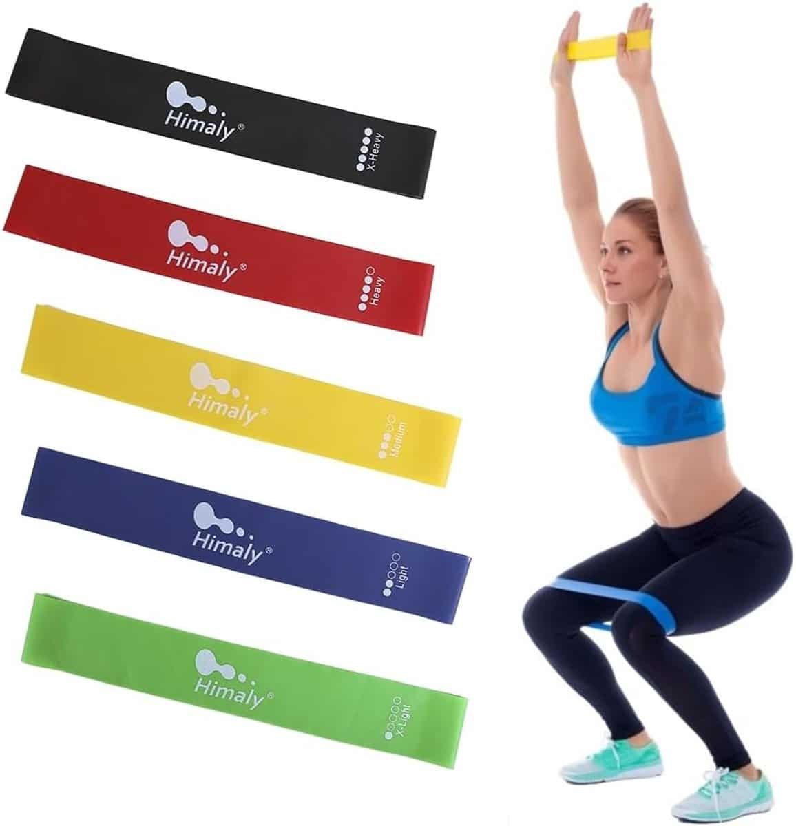 Weerstandsbanden Set voor Fitness, Yoga en Pilates – 5 Latex Weerstanden voor Krachttraining en Mobiliteit