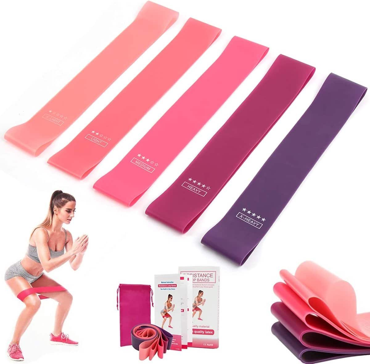 Weerstandsbanden set – Weerstandsbanden voor benen en billen, set van 5 weerstandsbanden voor thuisgym, yoga, pilates, krachttraining en booty workouts, inclusief draagtas