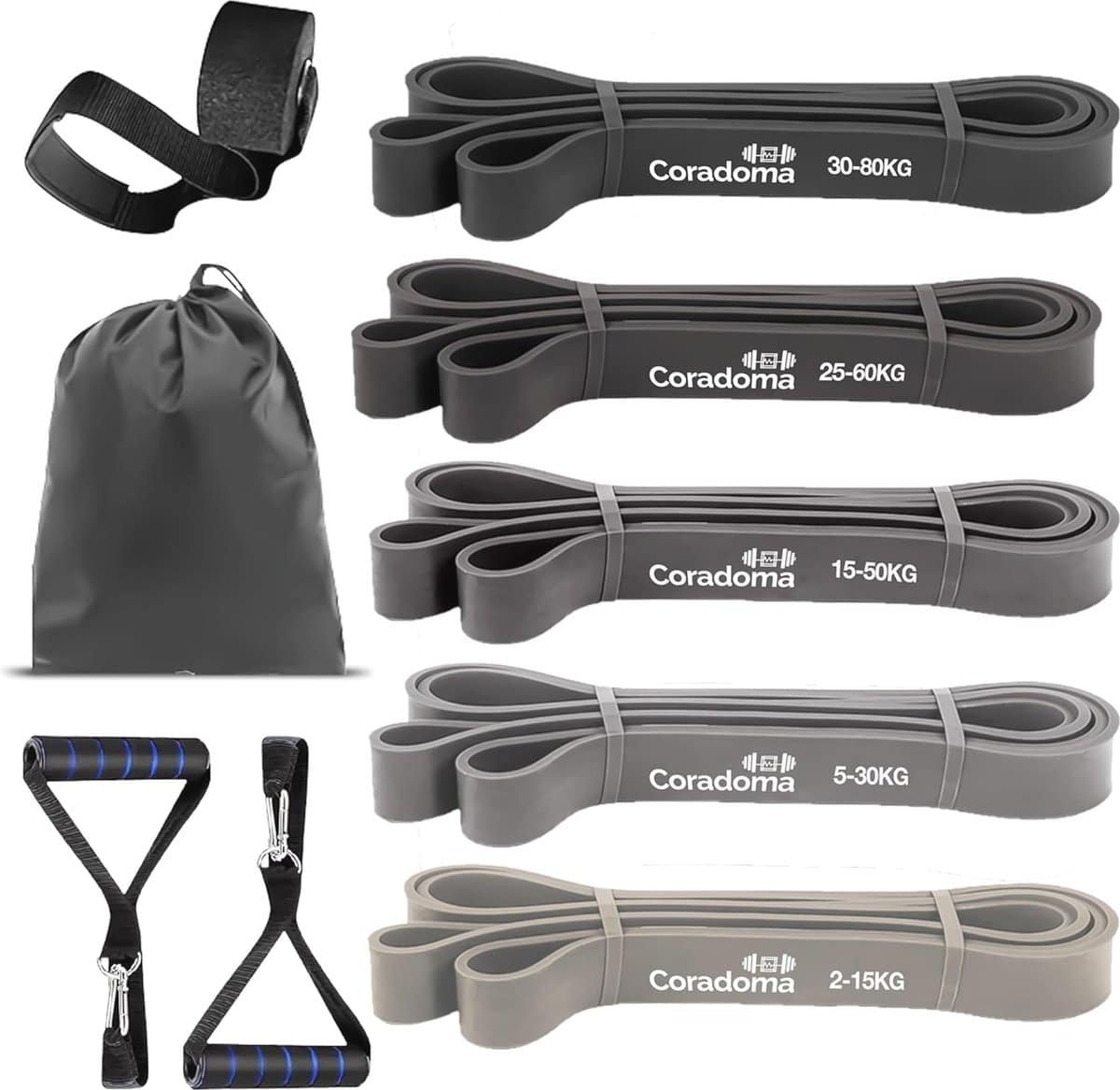Weerstandsbandenset voor Krachttraining en Stretching – 5 Weerstandsbanden met Deuranker en Handgrepen