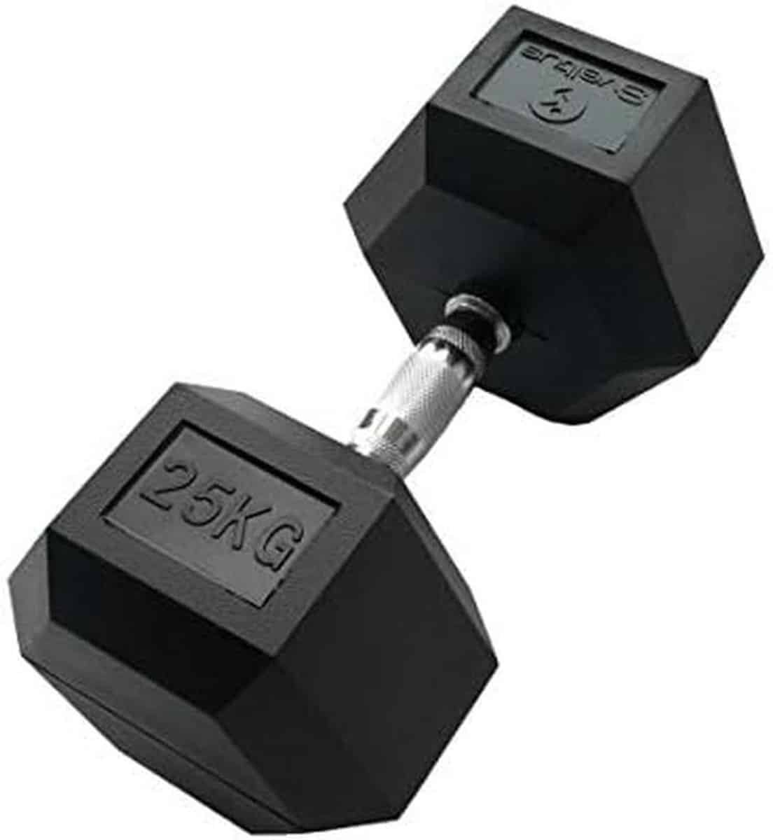 Train thuis of in de sportschool met deze stevige, zeshoekige halter van 25 kilogram. Het hexagonaal ontwerp voorkomt wegrollen, wat zorgt voor veiligheid en een gemakkelijke opslag. Ideaal voor een effectieve krachttraining van diverse spiergroepen.