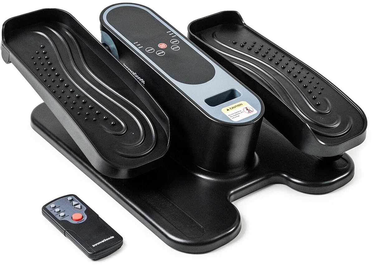 Een mini elektrische crosstrainer met afstandsbediening, ideaal om comfortabel zittend en zonder inspanning de benen te trainen, thuis of op kantoor.
